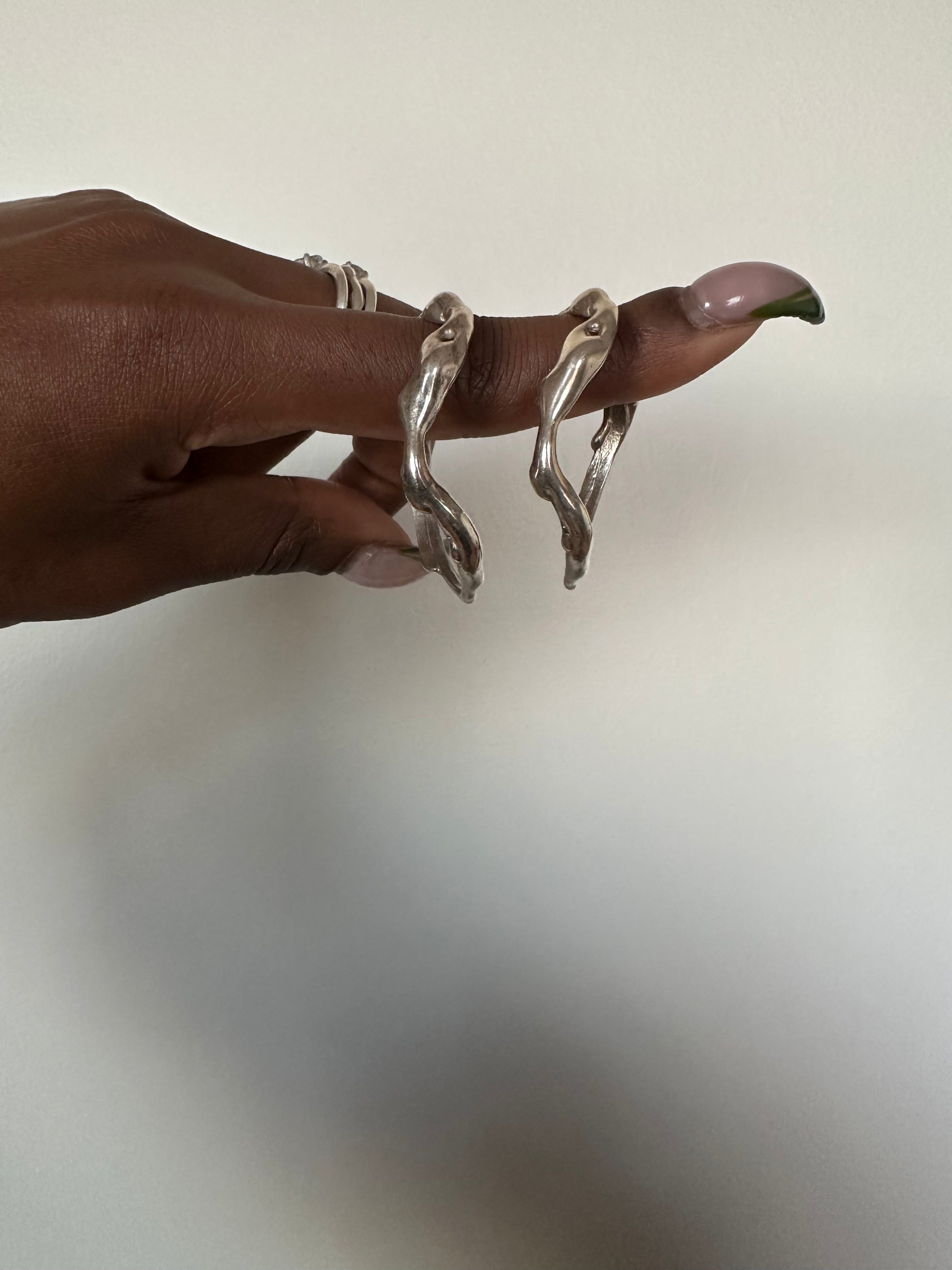 An organic take on the classic hoop, the Flow Earrings redefine elegance with their fluid, sculptural design. Crafted from 925 sterling silver, they are lightweight yet bold, making them the perfect statement piece for any occasion. These earrings are designed for those who move with confidence and ease.